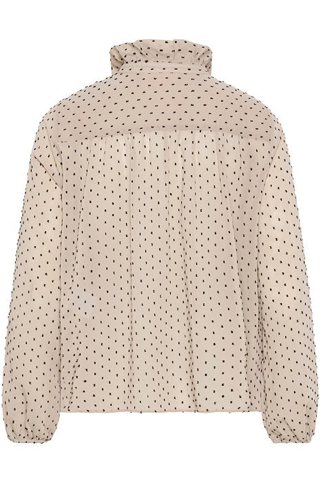 DOTTIEIW BLOUSE er en stilren og klassisk bluse laget av 100% polyester, perfekt for enhver anledning. Den tidløse steinfargen gir et elegant preg som enkelt kan styles med ulike antrekk.