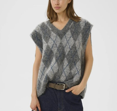 Gzsasi Vest Check Dark Grey/grey/blue Comb