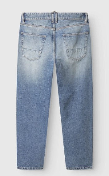 Carl Prag jeans i lys blå denim kombinerer stil og komfort. Disse jeansene er laget av en unik blanding av regenerert bomull og vanlig bomull, noe som gir både holdbarhet og mykhet.