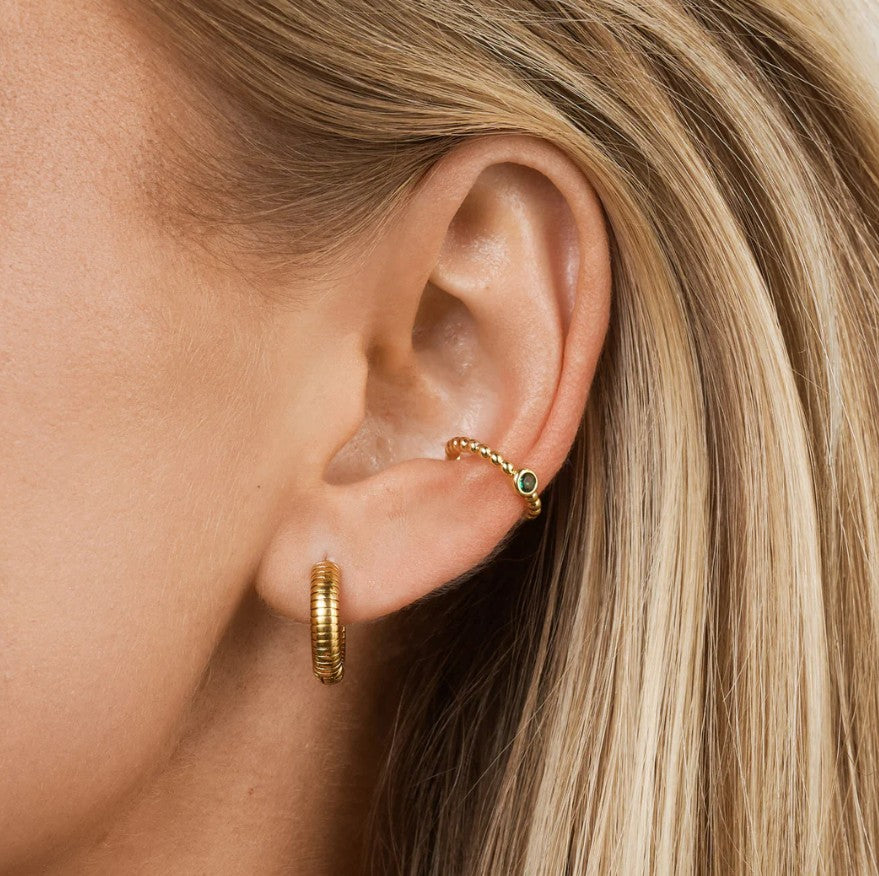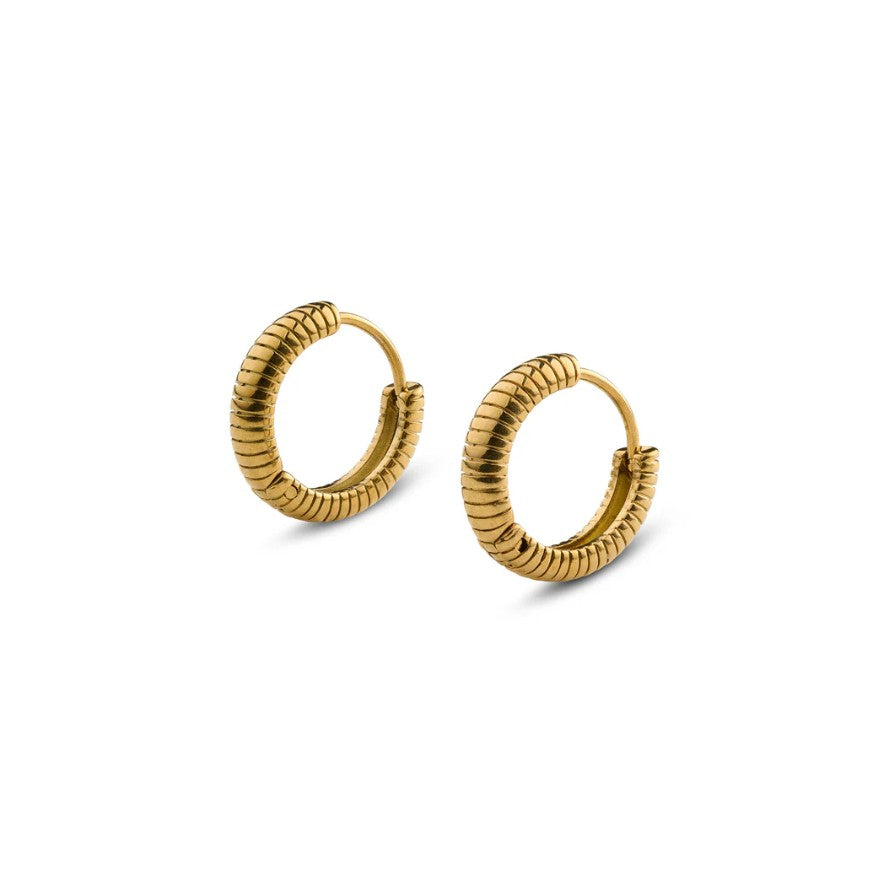 Klassisk med en vri! Vivia Ribbed Hoop Øredobber gir tekstur og stil til hverdagens utseende. Disse lette bøylene er laget av rustfritt stål og er perfekte for overganger fra dag til natt. Enten du kler deg ut eller holder det uformelt, er Vivia her for å snu hodet – én ribbede detalj om gangen.