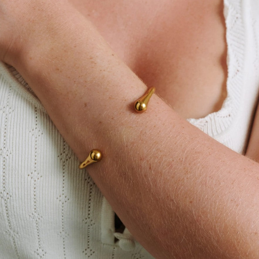 Stilig og allsidig med dette bangle armbåndet. Dette armbåndet i rustfritt stål i gull har et åpent design, er vannavstøtende og flekkfritt for moderne eleganse.