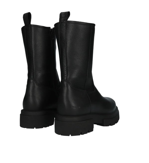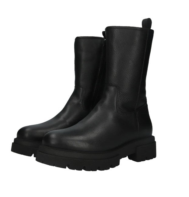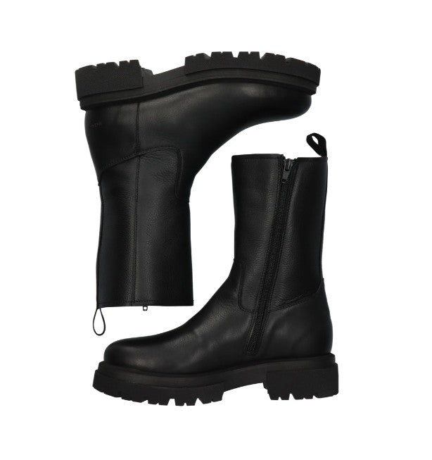 En høy behagelig svart boot, med glidelås som gjør det enkelt å påføre skoen.
