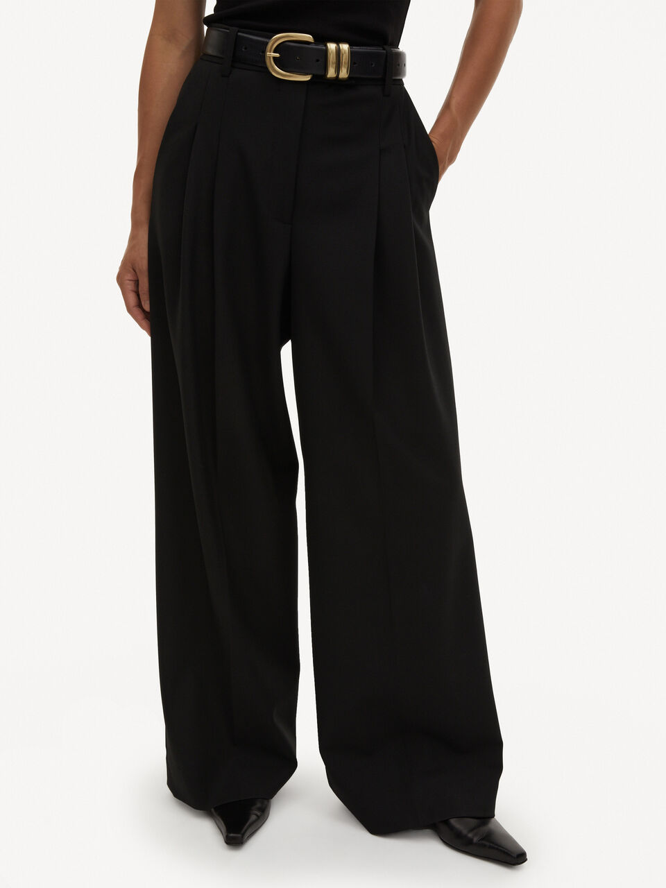 Bukse med både eleganse og letthet er en del av By Malene Birgers design-DNA, som Cymbaria-buksene. Denne høye designen fremhever midjen og gir brede ben som er punktert med pressede folder for en raffinert finish. Stikk en silkeskjorte inn i din for å fullføre looken.