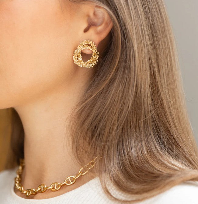 En moderne vri med vintage-sjarm. Gemma Knot-øredobbene er skulpturelle, glitrende og fulle av tekstur – perfekte for å pynte opp hverdagsantrekket eller gi et ekstra pigg til kveldsantrekket. Hvis du er i tvil, knytt den ut.