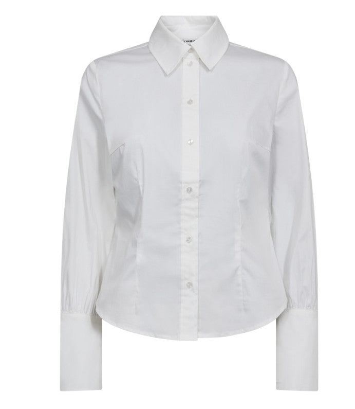Vakker, tettsittende skjorte fra Co'Couture i myk og lett elastisk kvalitet. SannaCC Pearl Cuff-skjorten har en klassisk krage, lange ermer med brede mansjetter, som lukkes med en fin, unik perleknapp. Skjorten lukkes foran med en klassisk knappelukking.