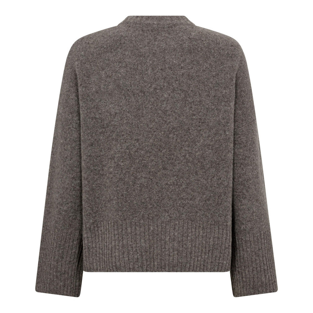 Lekker genser i fargen Walnut fra Cocouture. Strikkegenseren har en løs passform og lange ermer med ribbekanter ved ermene og nederst på blusen.