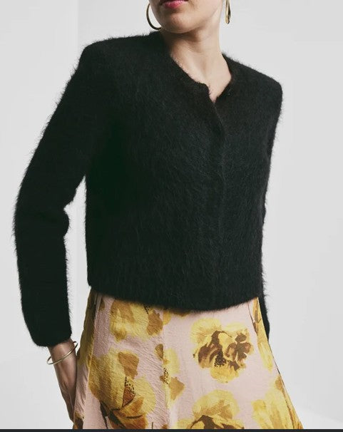 Hairy Knit-jakken er laget av vår svært myke og lodne blanding av RAS-sertifisert garn. Jakken har en rett silhuett, lange ermer og rund hals. Mansjettene, halsen og falden har vakre ribbedetaljer. Jakken lukkes foran med skjulte trykknapper.
