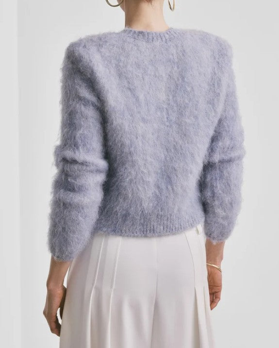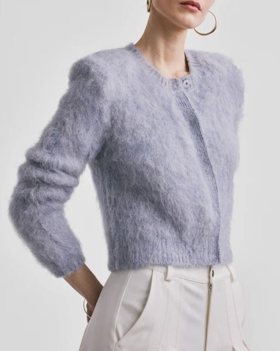 Hairy Knit-jakken er laget av vår svært myke og lodne blanding av RAS-sertifisert garn. Jakken har en rett silhuett, lange ermer og rund hals. Mansjettene, halsen og falden har vakre ribbedetaljer. Jakken lukkes foran med skjulte trykknapper.