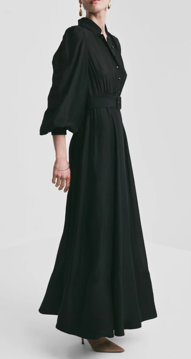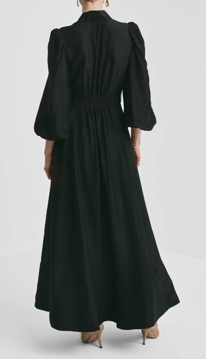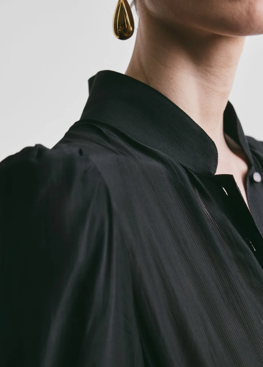 Striped Organza Belt Dress Black fra byTiMo er en elegant og litt transparent kjole laget av FSC-sertifisert viskose. Denne kjolen har teksturerte striper i stoffet, en maksimal lengde, en tilpasset midje, en mandarinkrage med knapper øverst og lange ermer med elastiske mansjetter. Striped Organza Belt Dress Black kommer med et matchende belte og har en glidelås på siden. Sammensetning: 100% viskose - FSC-sertifisert. Denne kjolen er perfekt for både hverdags og spesielle anledninger.
