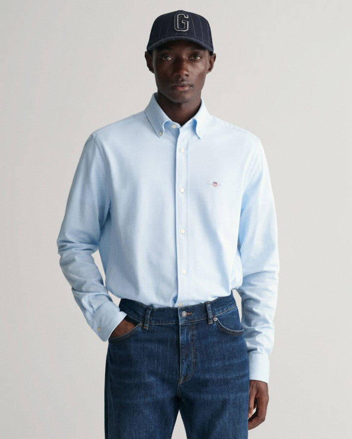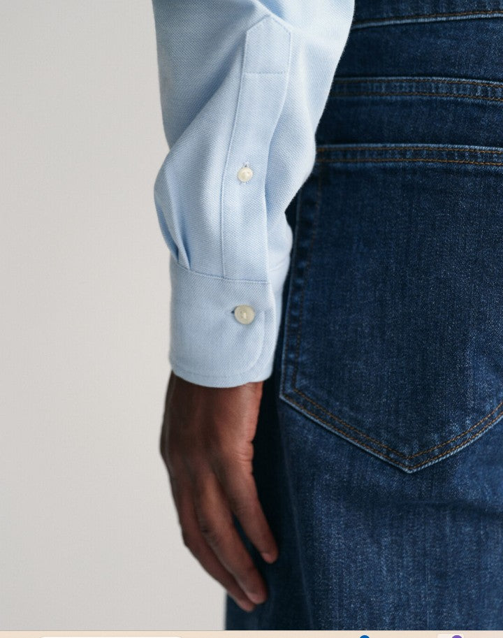 Denne skjorten er laget av samme lette bomullspikékvalitet som våre ikoniske poloskjorter, og er et must-have for sesongen. Den har normal passform, krage med knapper, justerbare mansjetter, knapper i resirkulert polyester og brodert GANT-skjoldgrafikk på brystet.