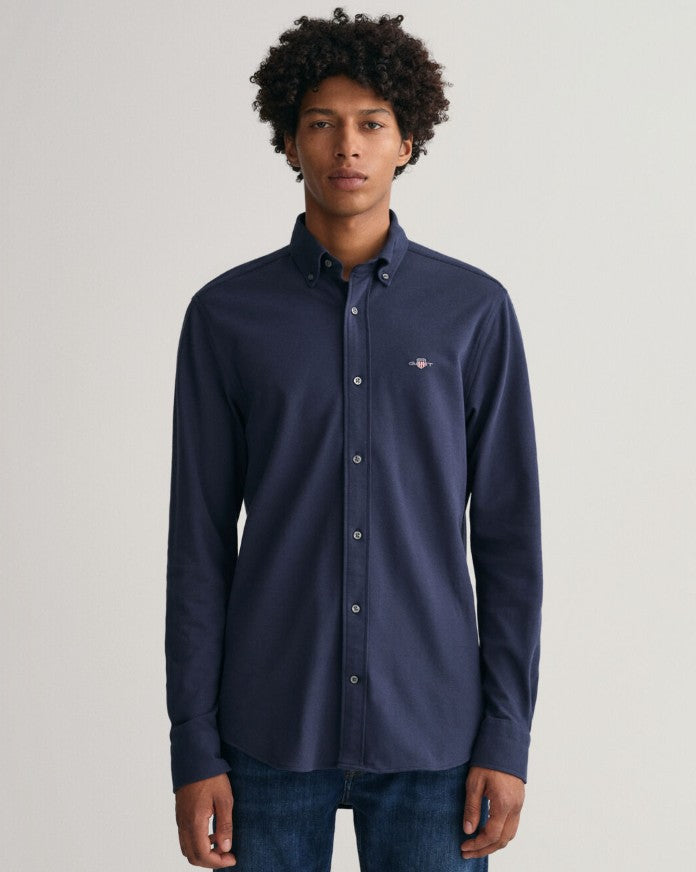 Denne skjorten er laget av samme lette bomullspikékvalitet som våre ikoniske poloskjorter, og er et must-have for sesongen. Den har normal passform, krage med knapper, justerbare mansjetter, knapper i resirkulert polyester og brodert GANT-skjoldgrafikk på brystet.