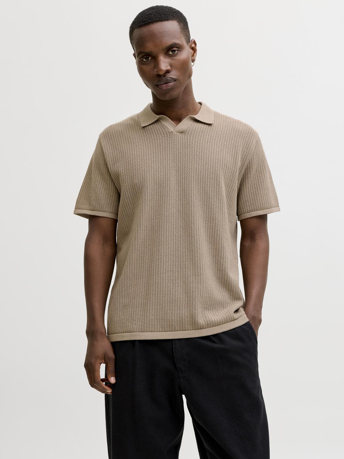 JJEJERRY KNIT SPLIT NECK POLO SS er en stilren og komfortabel polo med kort erm, perfekt for hverdagsbruk. Laget av økologisk bomull og resirkulert polyester, kombinerer denne poloen bærekraft med moderne design.