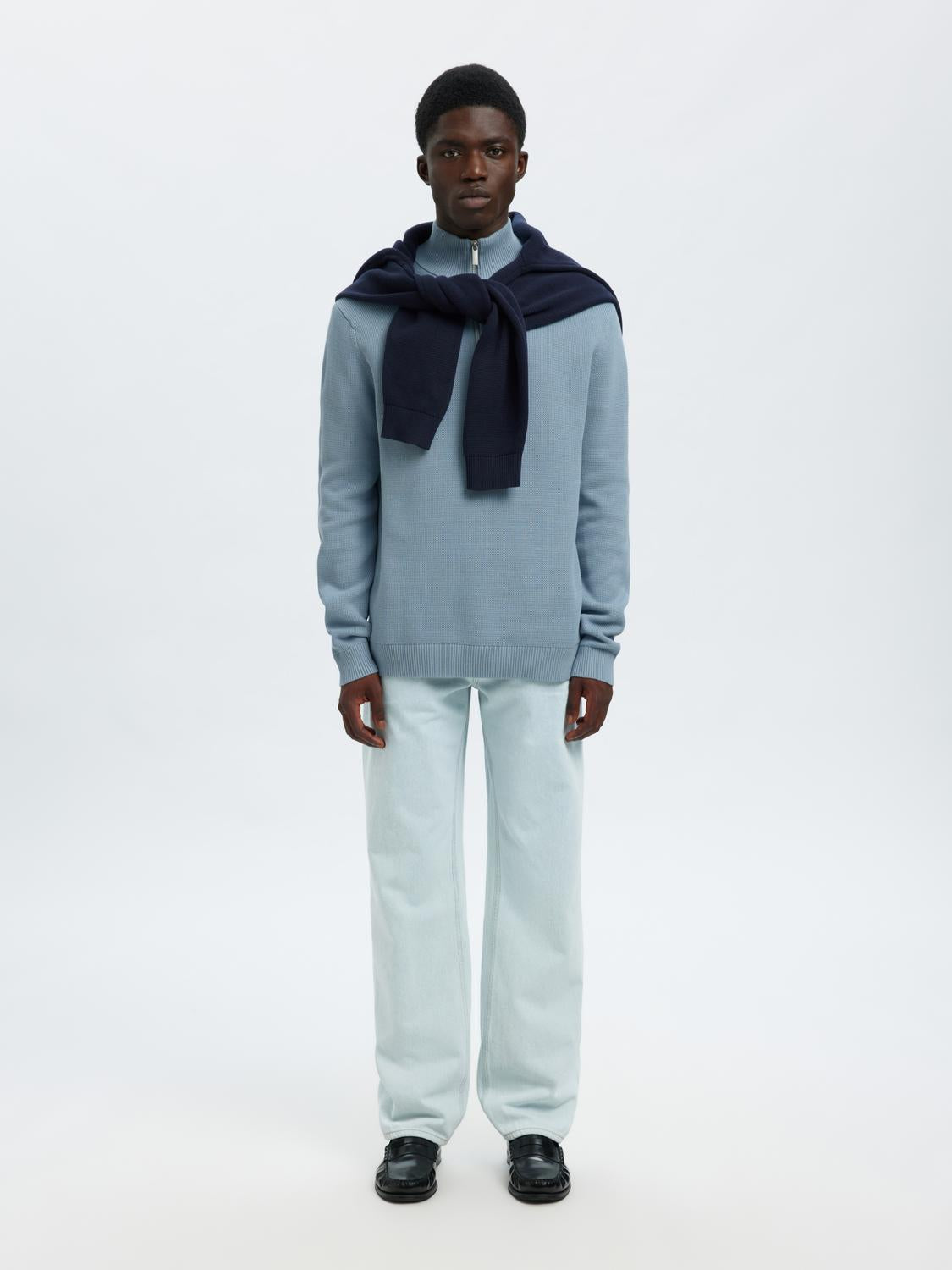 Slhdane ls knit structure half zip noos