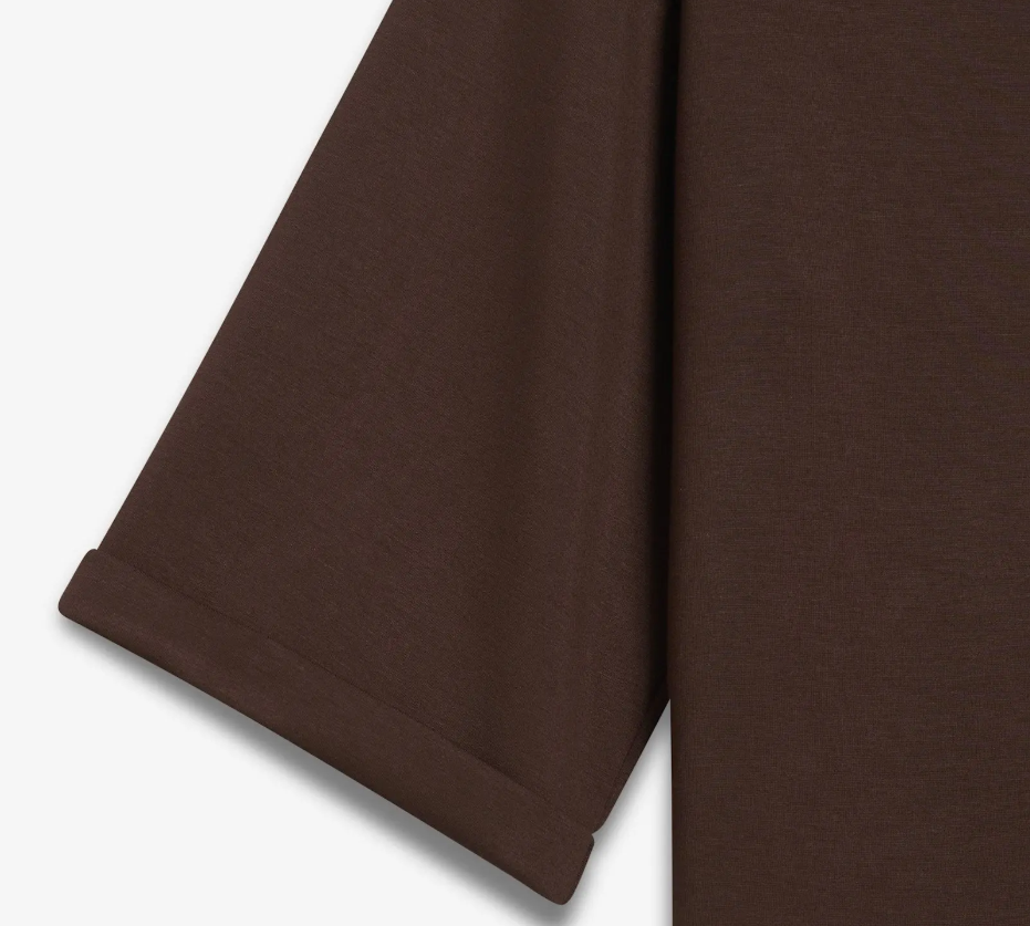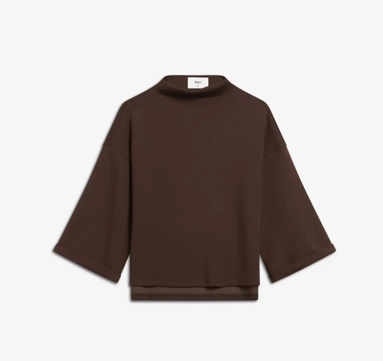 Elle-toppen er det perfekte hverdagsplagget som passer til alt. Laget av en tykk viskosejersey av premiumkvalitet, gir den en luksuriøst myk følelse som føles som en andre hud. Den har 3/4-ermer, en avslappet traktutringning og en løs, overdimensjonert passform som er bevisst designet for å falle uanstrengt. Detaljer inkluderer en diskret sidesømsplitt og en brettet ermeåpning for en ren, moderne finish.
