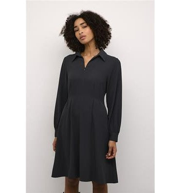 Kjole med regular fit som går til over kneet. V-hals og krage.