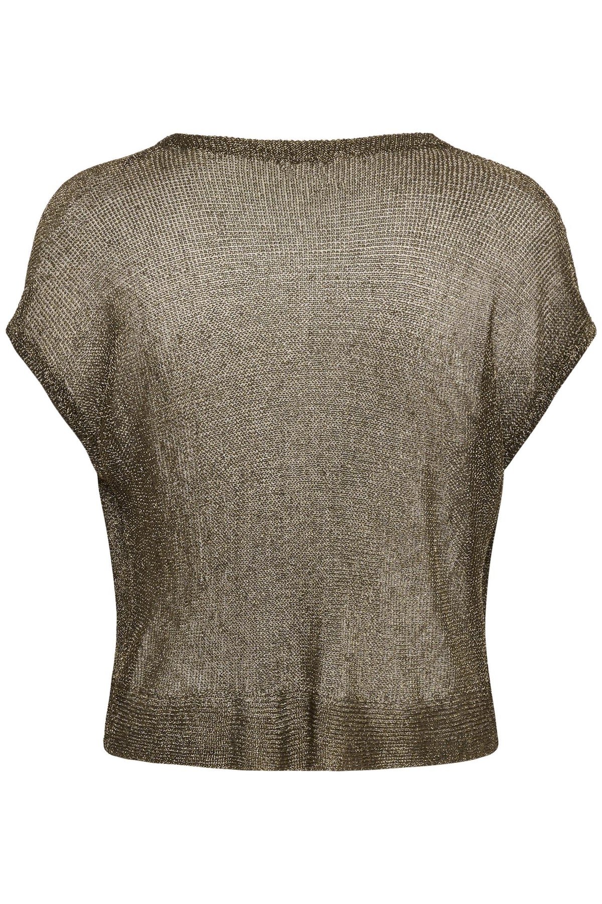 Materialer: 65% Viskose, 35% Metallisk Garn - Viskose er et mykt og pustende materiale laget av cellulose, som gir en behagelig følelse mot huden. Metallisk garn tilfører en glitrende effekt og gjør at toppen skiller seg ut.