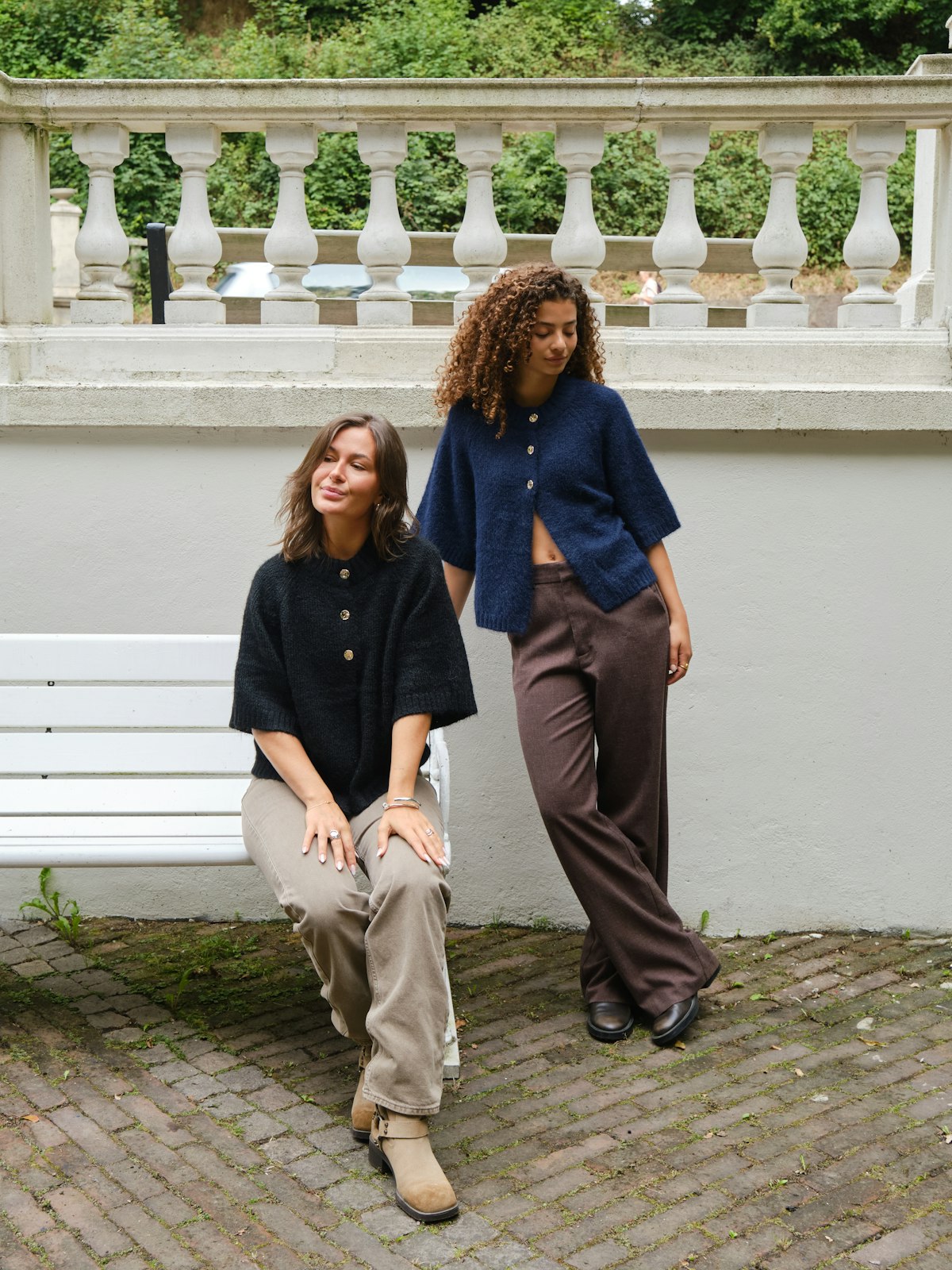Benuta Fluffy Knit Cardigan er en stilren og komfortabel cardigan som tilfører et mykt preg til ethvert antrekk. Den svarte fargen gjør den enkel å kombinere med andre plagg, og den fluffy teksturen gir en koselig følelse.