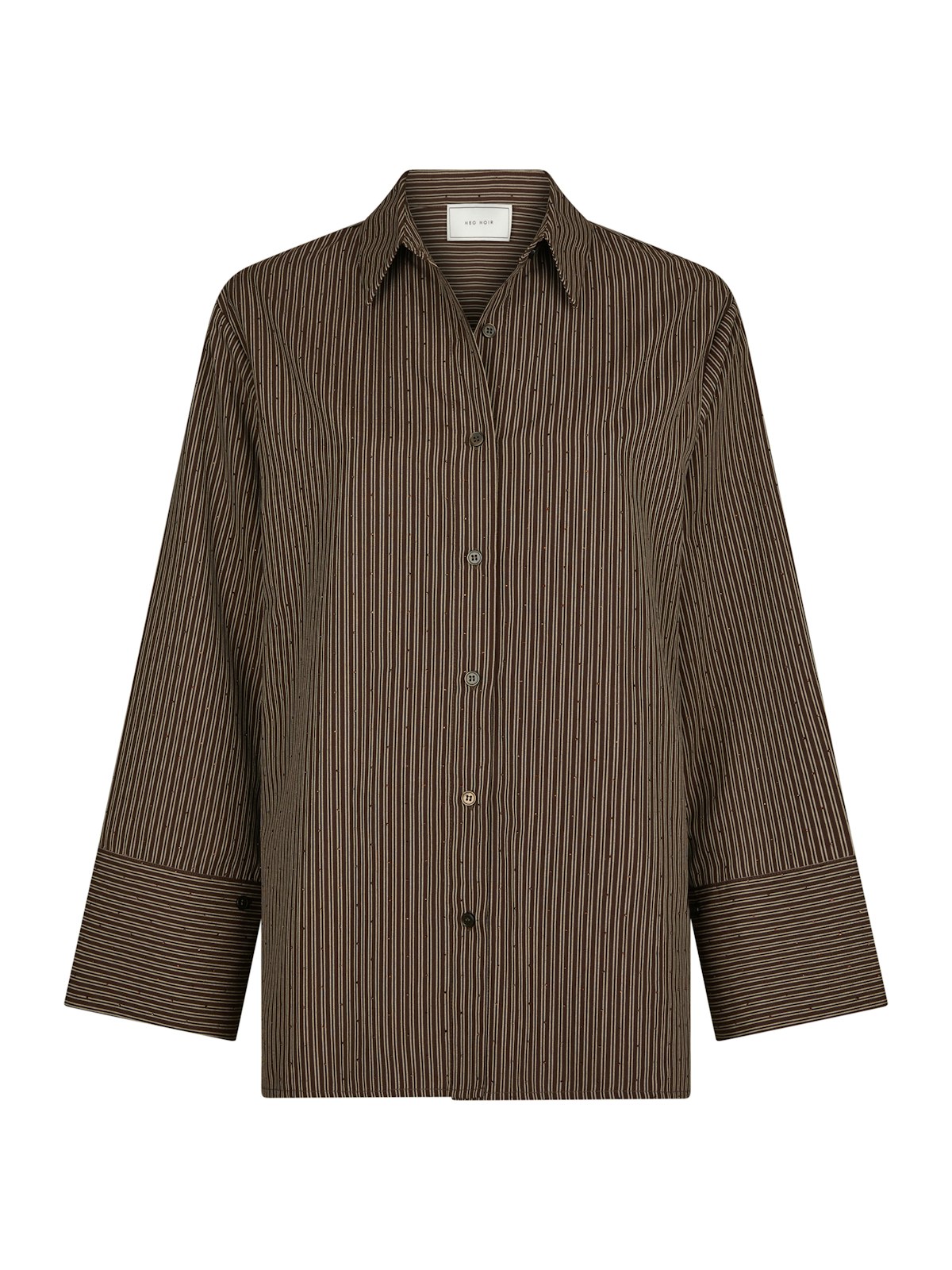 Dita Striped Line Shirt er en stilren oversized poplin-skjorte med lange, vide ermer. Den har et stripete design prydet med små dekorsteiner, som gir et unikt preg. Denne skjorten er perfekt for en avslappet, men likevel elegant look.