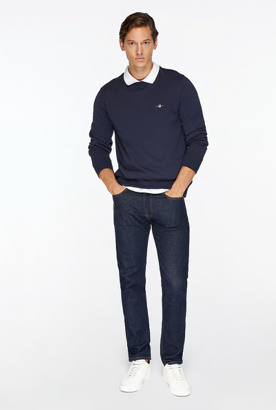 REG SHIELD C-NECK SWEAT er en klassisk rund hals genser med en komfortabel passform. Den har en liten logo på brystet og ribbestrikk ved ermer og nederst.