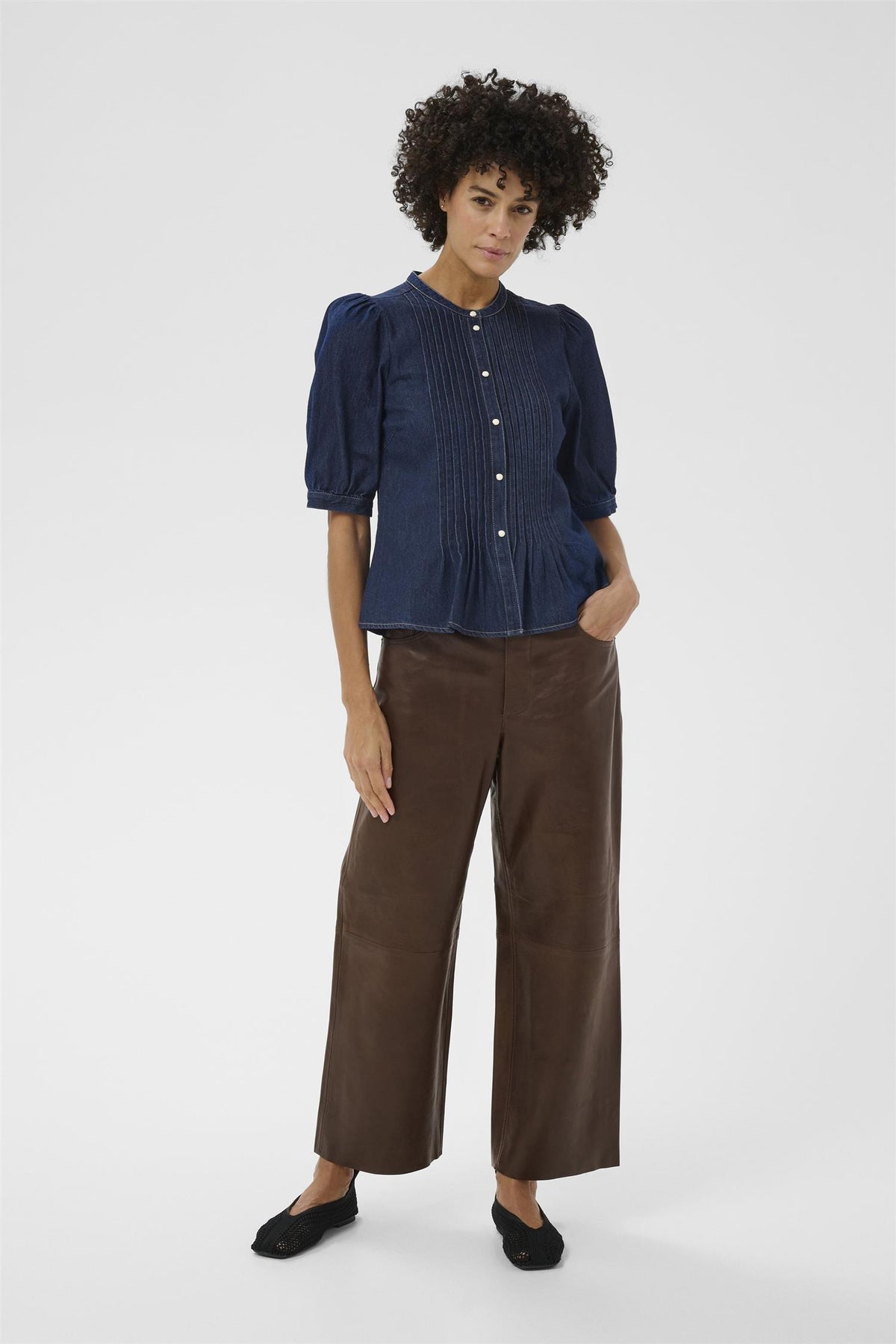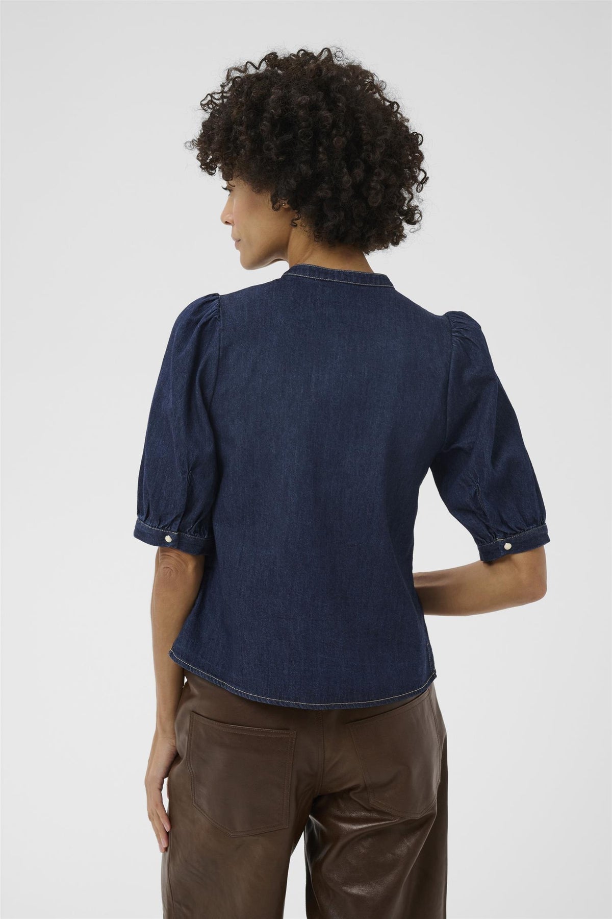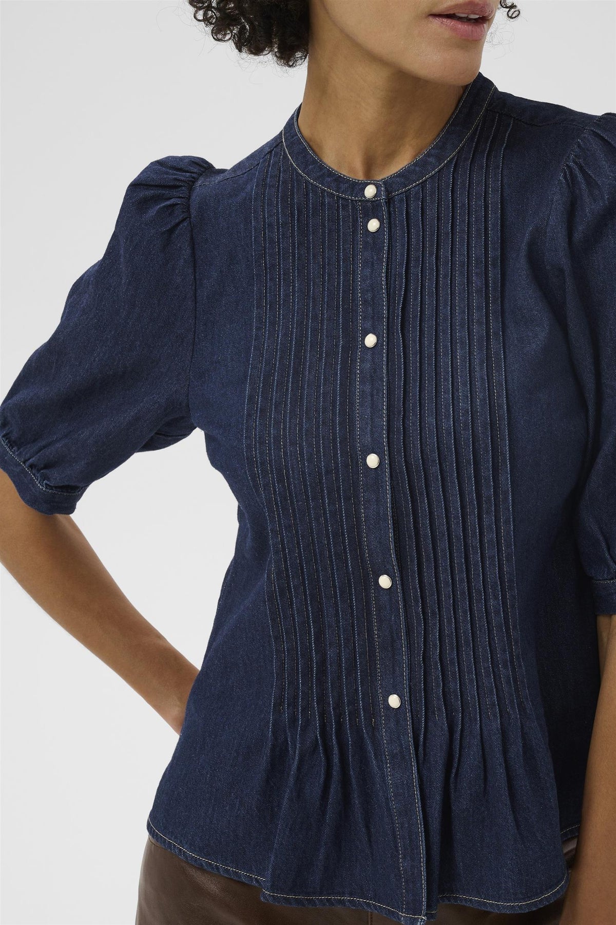 AlesiaPW SH er en stilfull skjorte i mørk blå denim, laget av 100% bomull for en behagelig og pustende passform. Denne feminine skjorten er perfekt for hverdagsbruk og gir et elegant preg til ethvert antrekk.