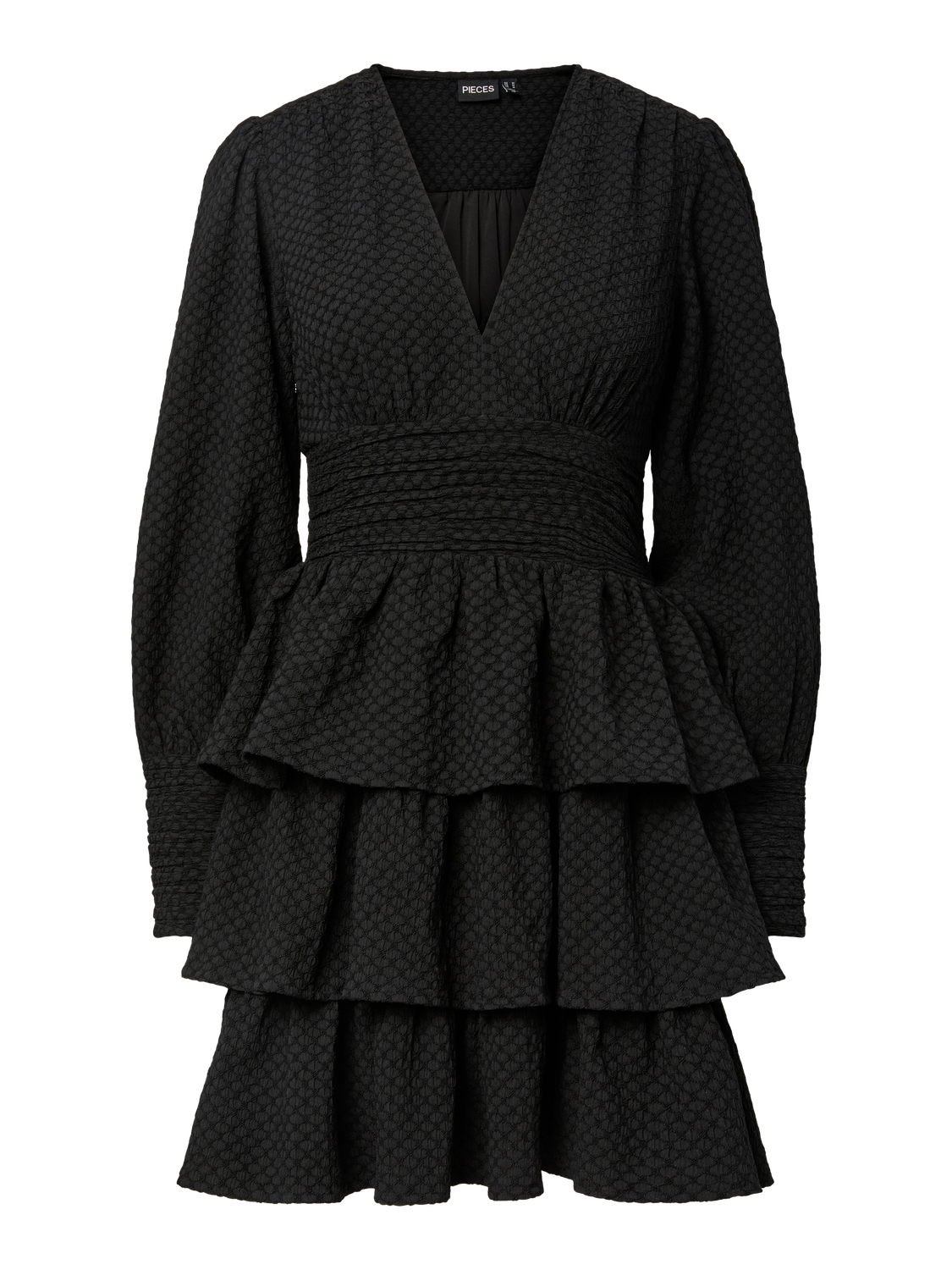 PCMONIKA LS SHORT DRESS WVN D2D er en elegant og moderne kjole i sort, perfekt for enhver anledning. Med lange ermer og et stilrent design, gir denne kjolen et sofistikert preg til garderoben din.