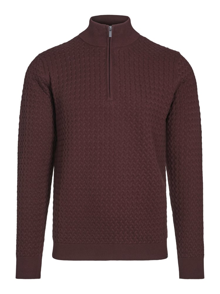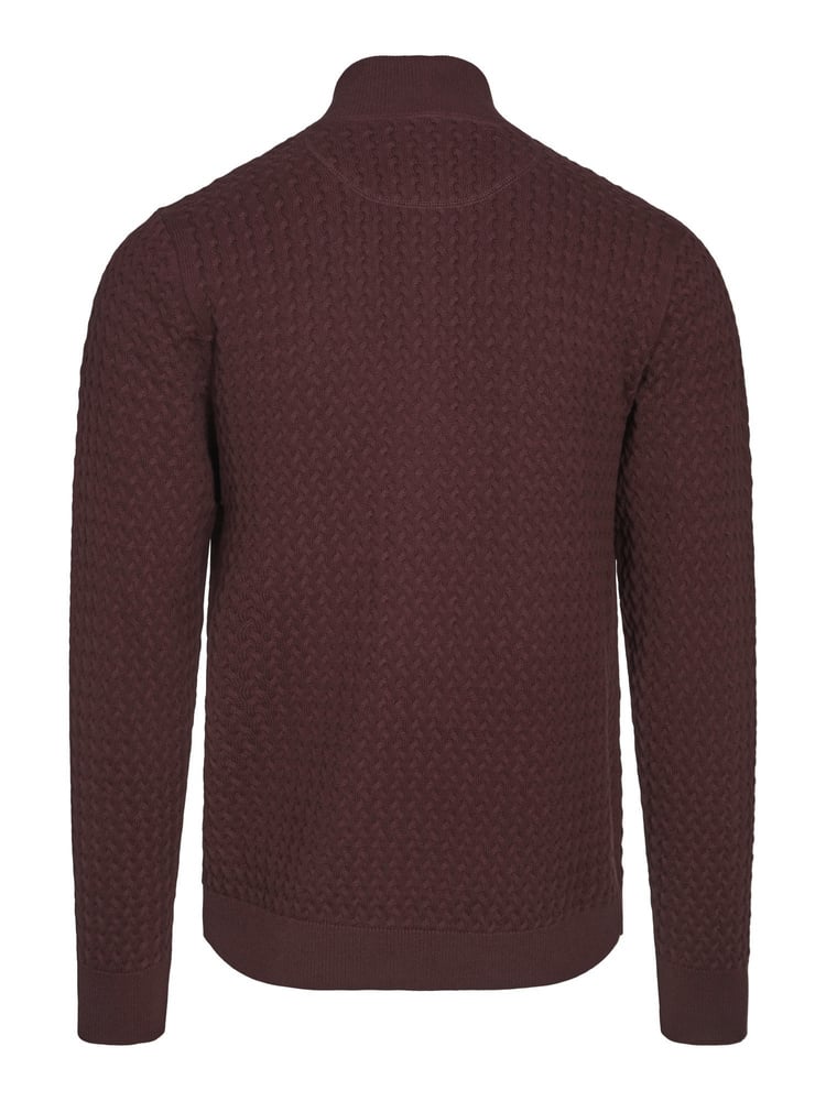 Joe strikkegenser i burgunder er et stilrent valg for den moderne mannen. Laget av en myk blanding av bomull og kasjmir, gir denne genseren både komfort og stil. Perfekt for en avslappet dag eller en uformell sammenkomst.