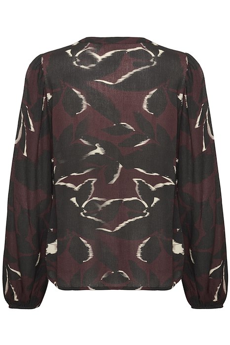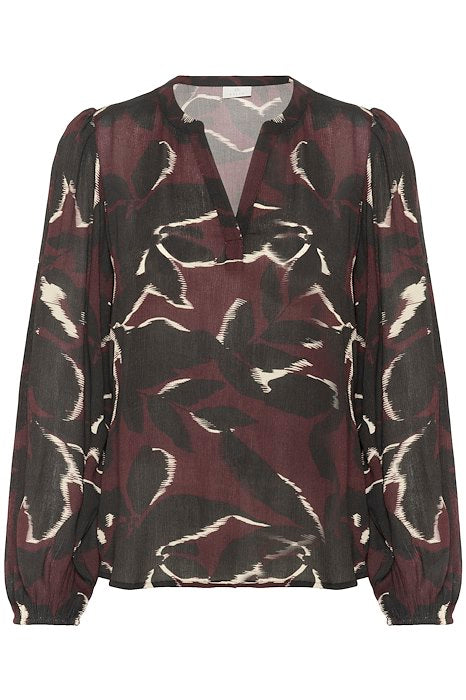KAbeate Amber Blouse er en elegant og stilfull bluse laget av 100% Viscose (LENZING™ ECOVERO™), som gir en myk og behagelig følelse mot huden. Den vakre fargen Windsor Wine med svarte blomsterdetaljer gir et sofistikert preg, perfekt for enhver anledning.