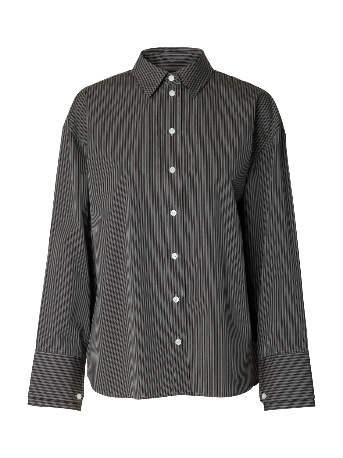Slfdan Ls Oversized Shirt Ex Chocolate Torte Stripes