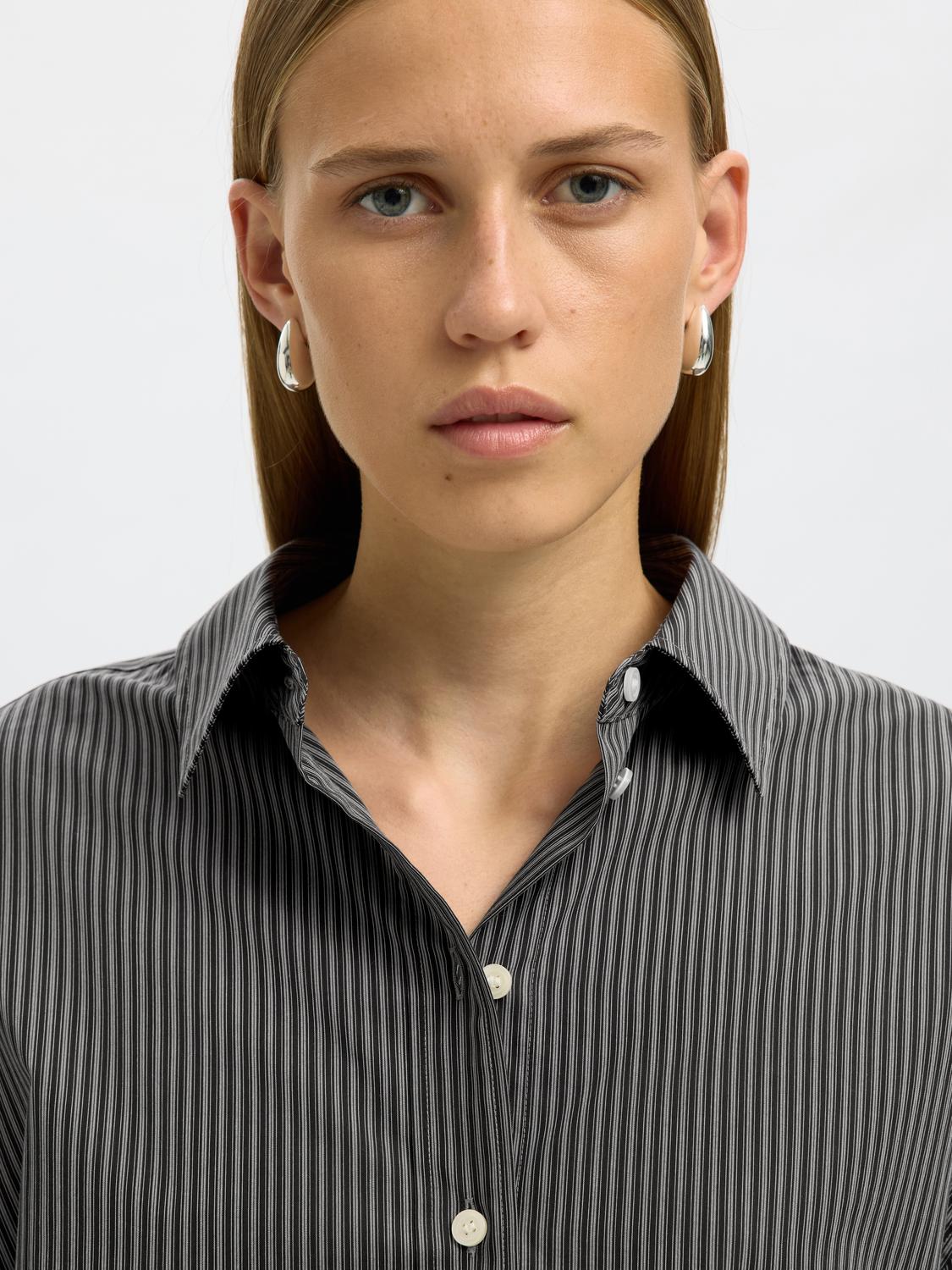 SLFDAN LS OVERSIZED SKJORTA EX i fargen Chocolate Torte STRIPES kombinerer stil og komfort med sitt oversized design. Denne skjorten er laget av 100% bomull, noe som gir en myk og pustende følelse, perfekt for hverdagsbruk.