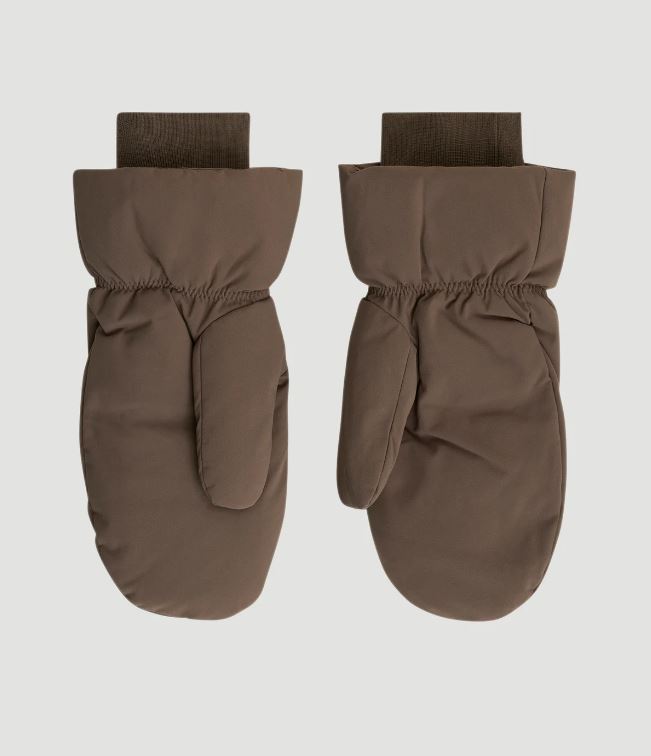 Holzweiler 'Slogen Bubble Mittens' er dunpolstrede boblevotter. Designet med en elastisk ribbe på åpningen, og detaljert med en trykt Holzweiler-logo på håndleddet. Vottene har en 10K/10K vanntett DWR-finishing som gjør den vannavstøtende.
