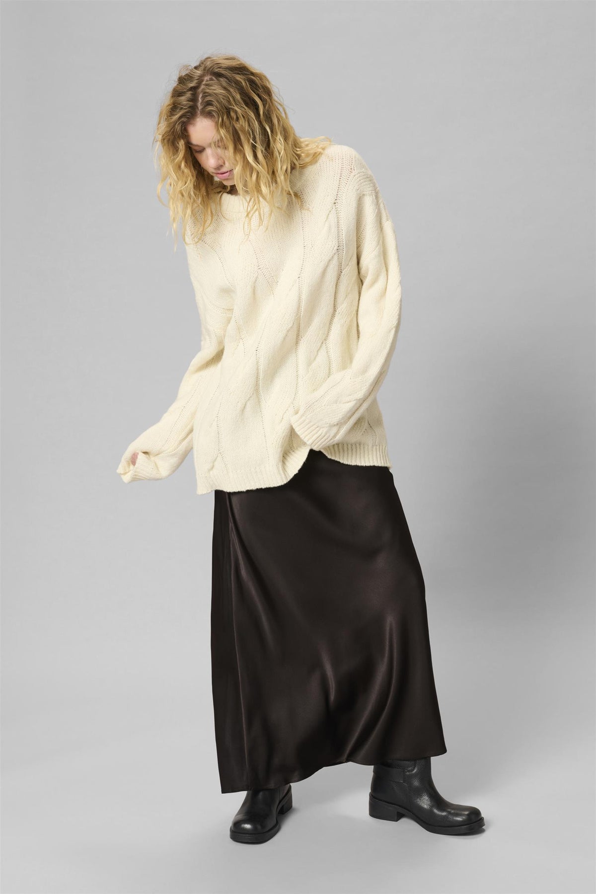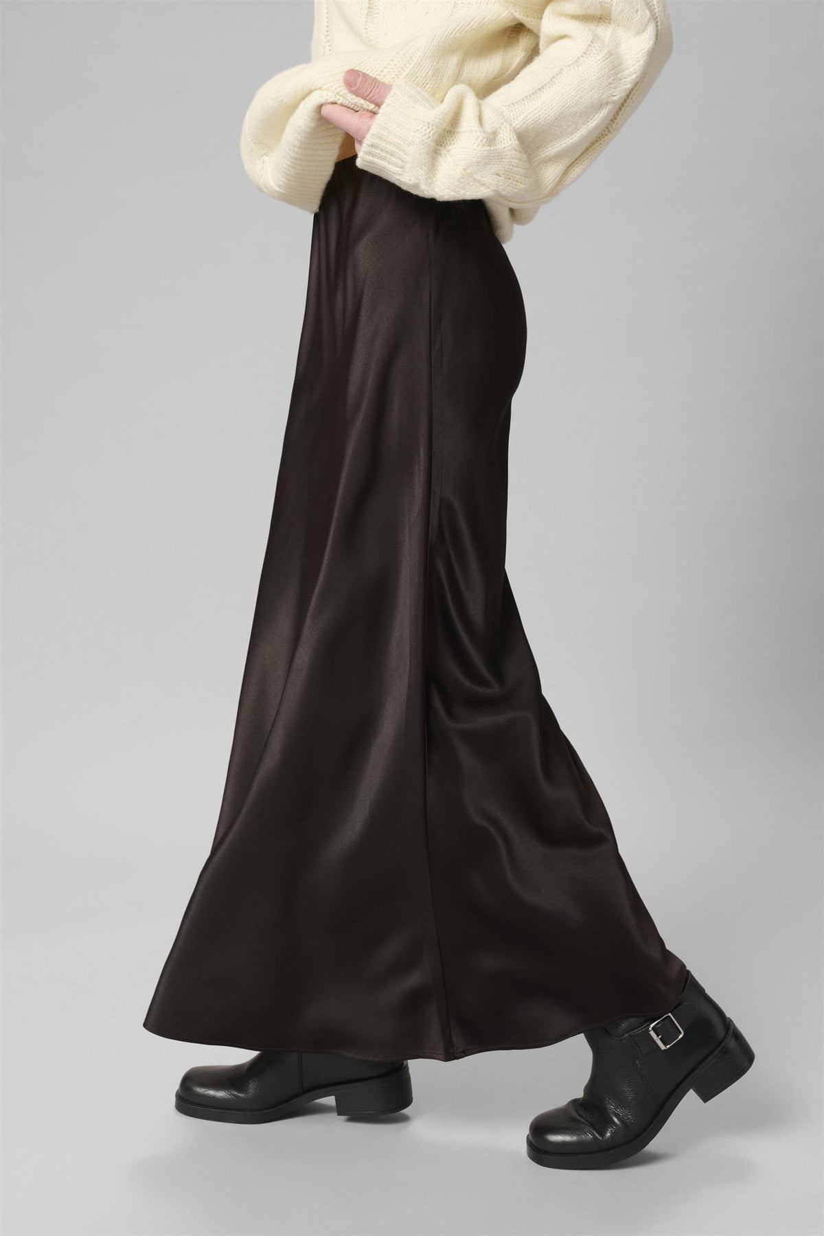 EstelleMW lang skjørt i en elegant espresso-farge er det perfekte tilskuddet til din garderobe. Laget av bærekraftige materialer, kombinerer dette skjørtet stil og komfort på en utmerket måte.