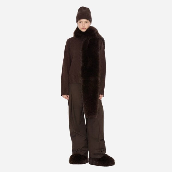 Holzweiler Furry Scarf er et elegant og luksuriøst skjerf til henne, skapt for å tilføre både varme og et sofistikert preg til vintergarderoben. Skjerfet er laget i myk, høykvalitets fuskepels, som gir en fluffy og behagelig tekstur samtidig som det er et dyrevennlig alternativ til ekte pels. Innsiden er fôret med ton-i-ton sateng, som gir en silkemyk følelse mot huden og gjør skjerfet ekstra komfortabelt å bruke gjennom hele dagen.
