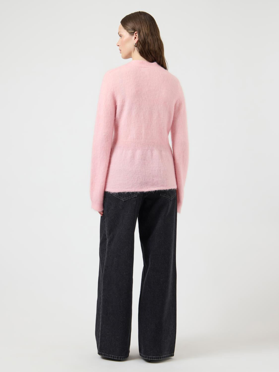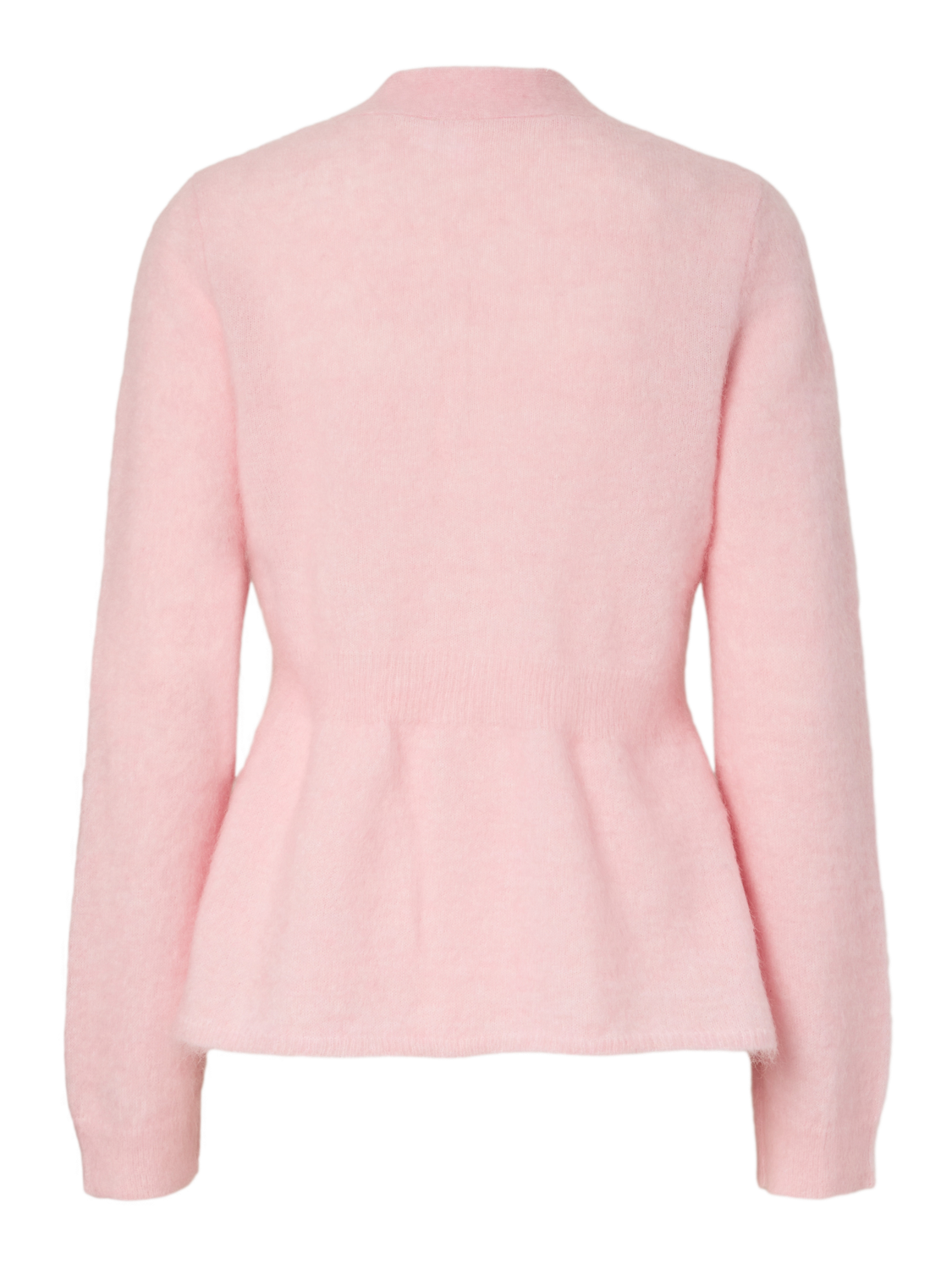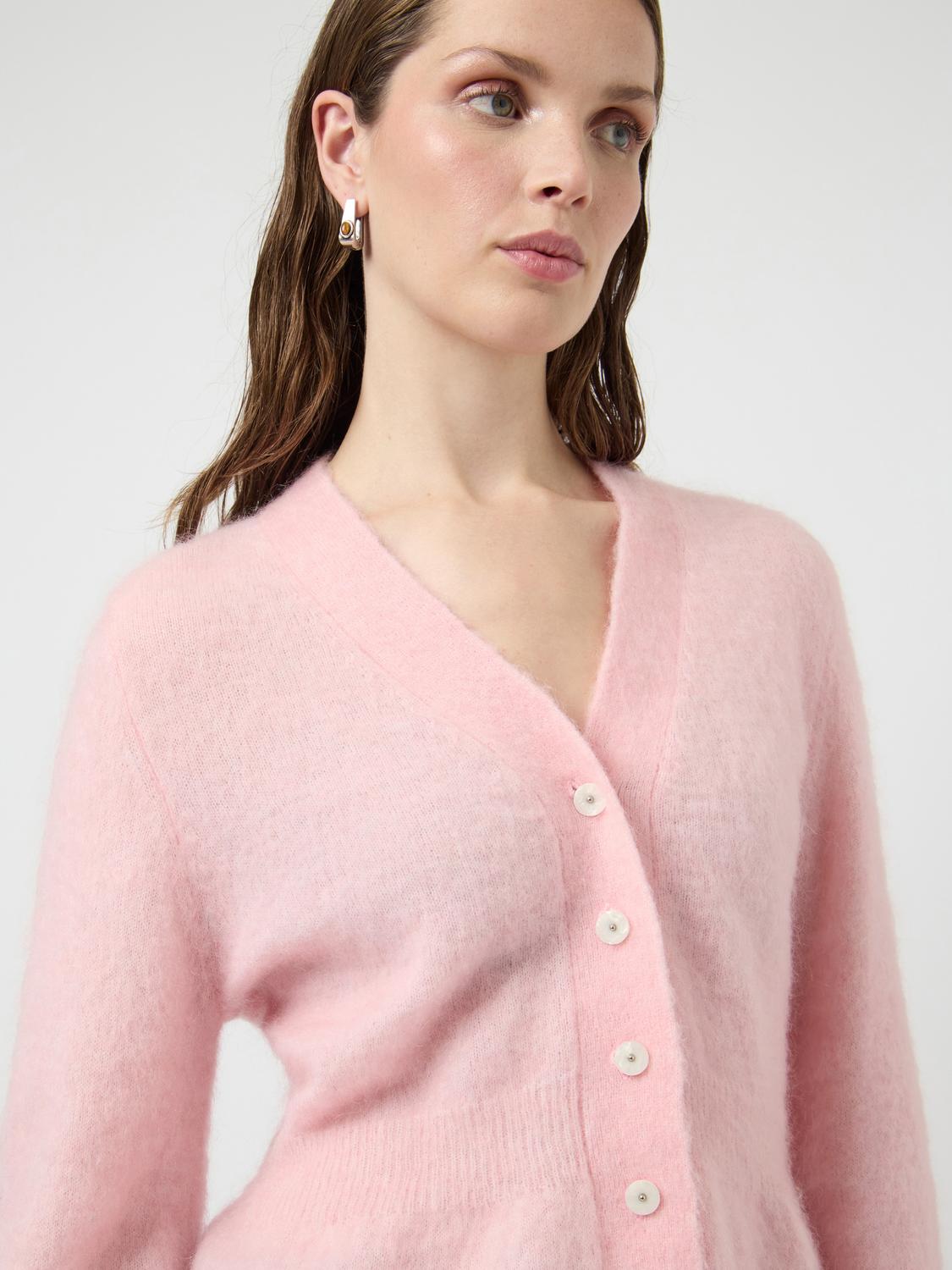 YASLIMO LS MOHAIR BLEND KNIT CARDIGAN EX er en elegant og komfortabel strikkegenser i en vakker lyserosa farge. Laget med en blanding av kvalitetsmaterialer, gir denne cardiganen både stil og varme, perfekt for kjøligere dager.